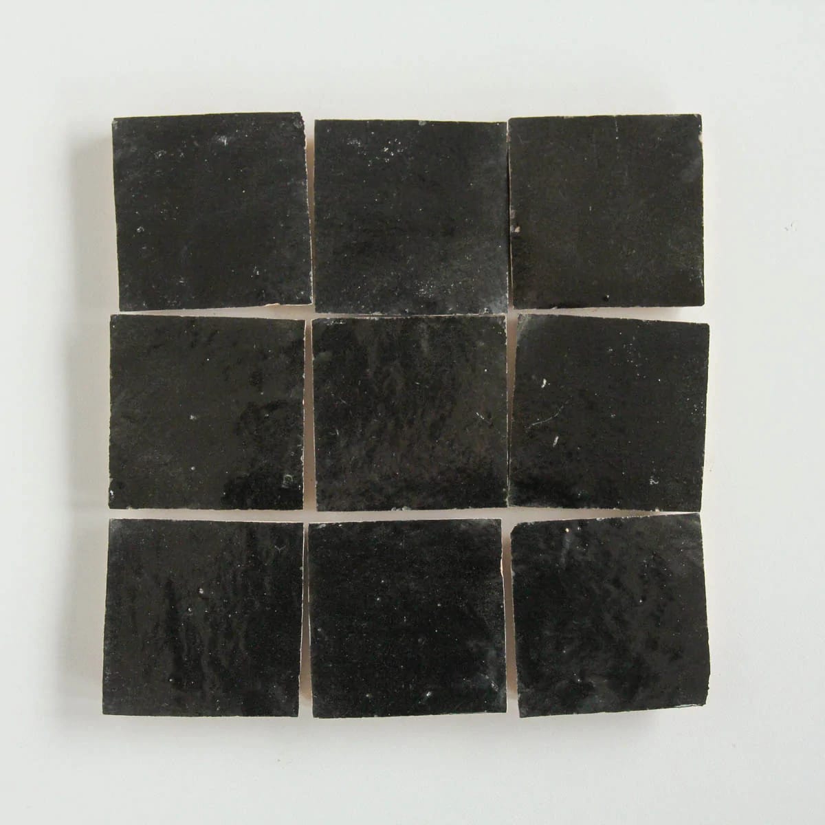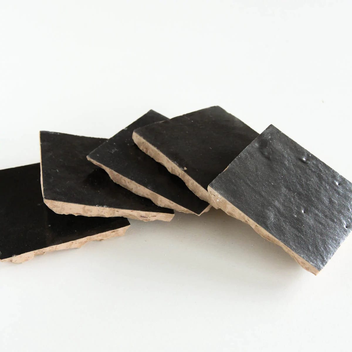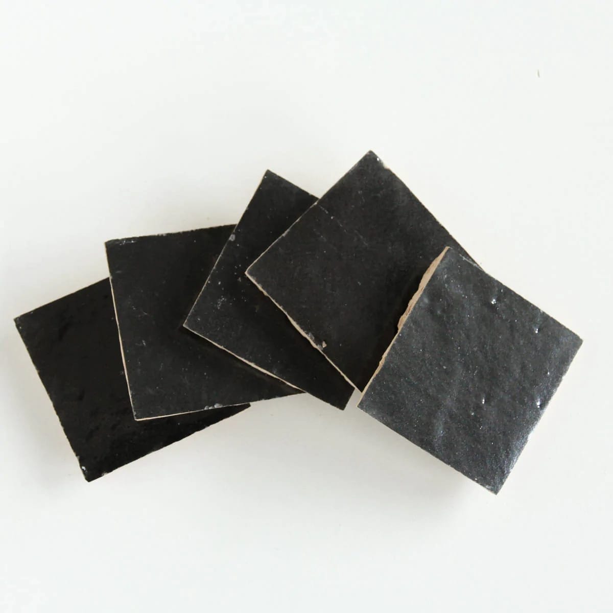 De færdige Zellige har masser af fejl. Chips og små huller i glasuren, enkelte lidt skæve kanter, forskellig tykkelse og farvevariation.