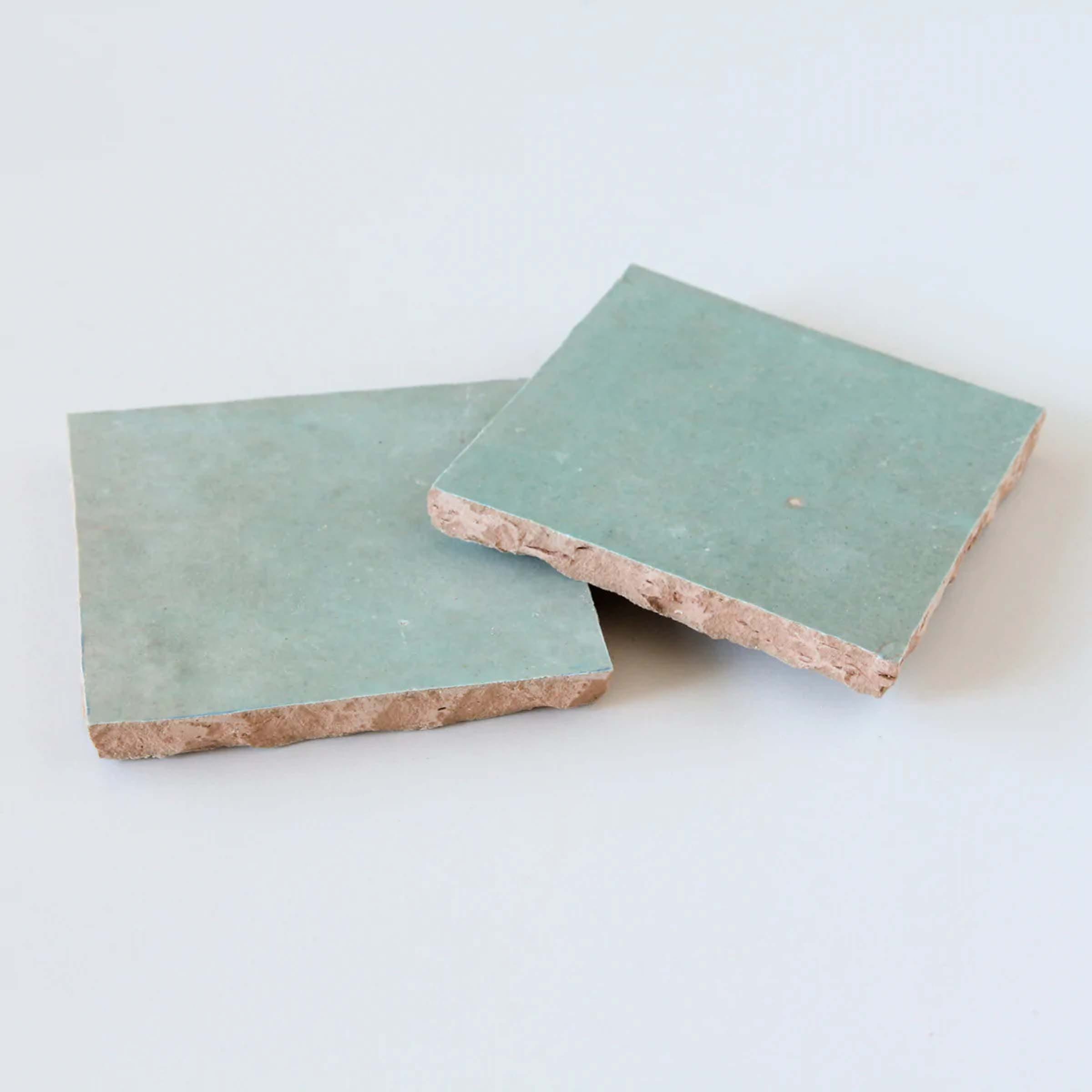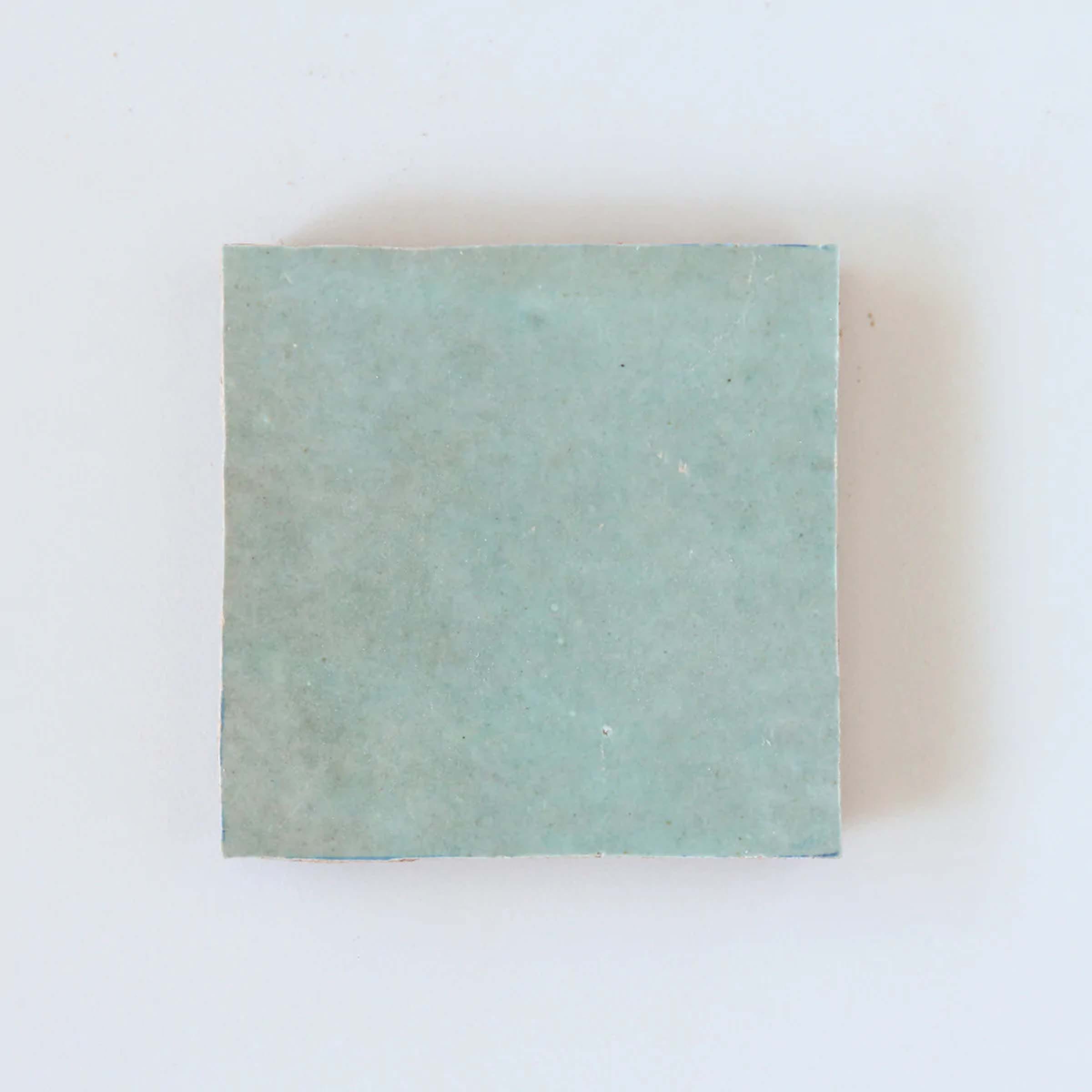 Glaseret marokkansk flise i en lys turkisgrøn farve.