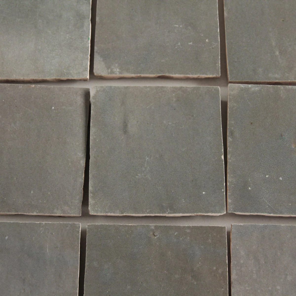 De færdige Zellige har masser af fejl. Chips og små huller i glasuren, enkelte lidt skæve kanter, forskellig tykkelse og farvevariation.